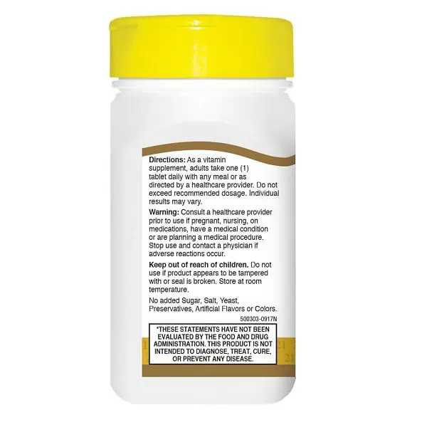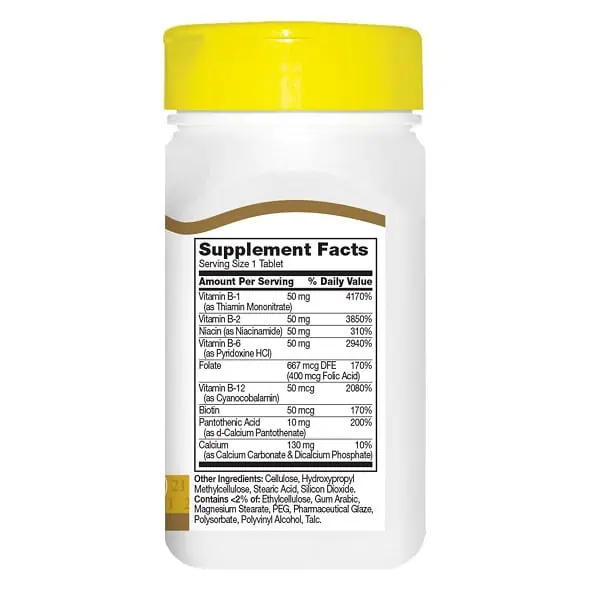 در هر قرص 21st Century B-50 Complex مقادیر دقیقی از ویتامینهای گروه B وجود دارد: