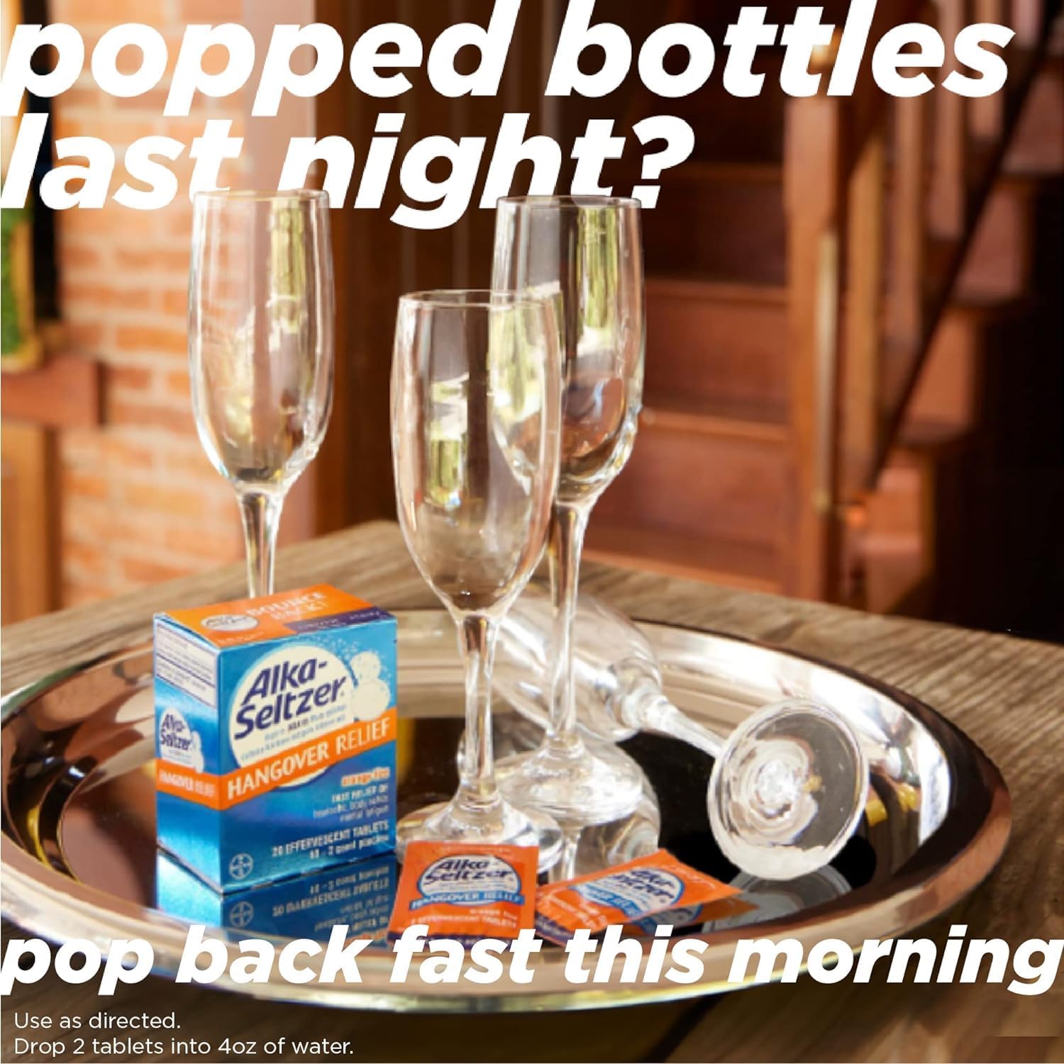 تسکین سریع خماری: قرص های تسکین خماری Alka-Seltzer با آسپرین فرموله شده و با کافئین تقویت می شود تا به شما کمک کند دوباره احساس کنید.