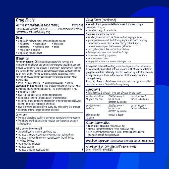 استفاده، قرص ها را قبل از مصرف به طور کامل در 4 اونس آب حل کنید. بزرگسالان و کودکان بالای 12 سال می توانند 2 قرص هر 4 ساعت در صورت نیاز یا طبق دستور پزشک مصرف کنند. از 8 قرص در 24 ساعت بیشتر استفاده نکنید. بزرگسالان 60 و بالاتر از 4 قرص در 24 ساعت بیشتر استفاده نکنند.