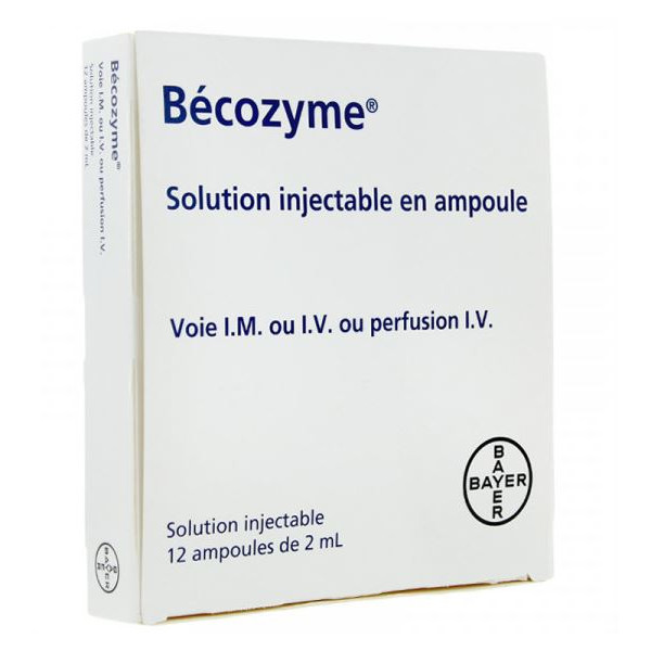 آمپول بکوزیم بایر آلمان Becozyme B-Vitamine 12 حاوی ترکیبی از ویتامین های گروه B است که در متابولیسم نقش ویژه ای دارند. این محلول تزریقی در آمپول برای محافظت از افرادی که به طور انحصاری تغذیه تزریقی دریافت می کنند و از کمبود ویتامین B رنج می برند مناسب است. این داروی بایر را می توان به صورت داخل وریدی (IV)، عضلانی (IM) یا به صورت انفوزیون داخل وریدی تجویز کرد.