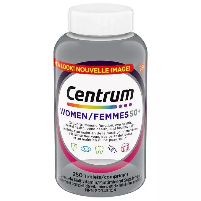 مولتی ویتامین زنانه سنتروم 250 عدد CENTRUM WOMEN FEMMES 50 PLUS یک مکمل غذایی بینظیر است که بهطور ویژه برای زنان بالای 50 سال طراحی شده است. این مکمل با ترکیبی از ویتامینها و مواد معدنی ضروری، به حفظ سلامت عمومی بدن، تقویت سیستم ایمنی، حفظ سلامت چشمها، استخوانها و پوست کمک میکند. اگر شما هم به دنبال مکملی برای تأمین نیازهای تغذیهای خود در این سنین هستید، مولتی ویتامین سنتروم 50 پلاس میتواند یک انتخاب مناسب برای شما باشد.