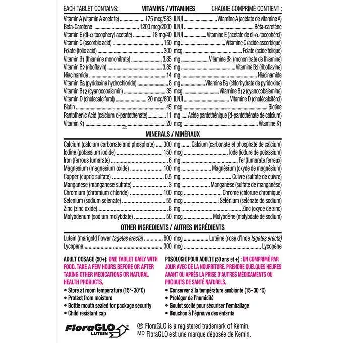 حفظ سلامت چشمها: با افزایش سن، مشکلات چشمی مانند تباهی لکه زرد (AMD) شایعتر میشود. برای این منظور، این مولتی ویتامین حاوی لوتئین است که به سلامت چشمها کمک میکند و میتواند از بروز مشکلات چشمی جلوگیری کند.