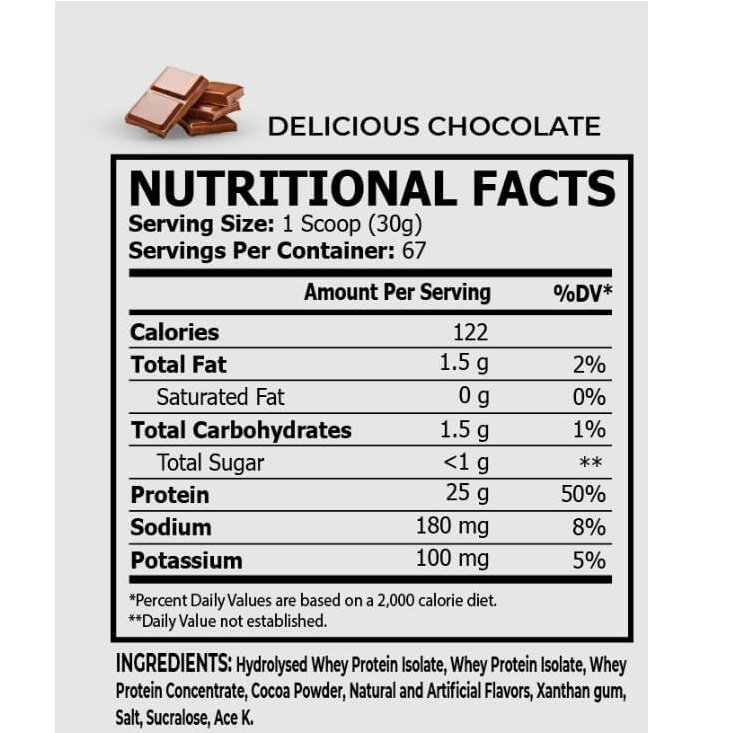 - پروتئین وی ایزوله 100%: در هر وعده، 25 گرم پروتئین خالص از نوع وی ایزوله ارائه میدهد. این پروتئین منبع اصلی برای سنتز پروتئین عضلانی است و به سرعت در بدن جذب میشود.