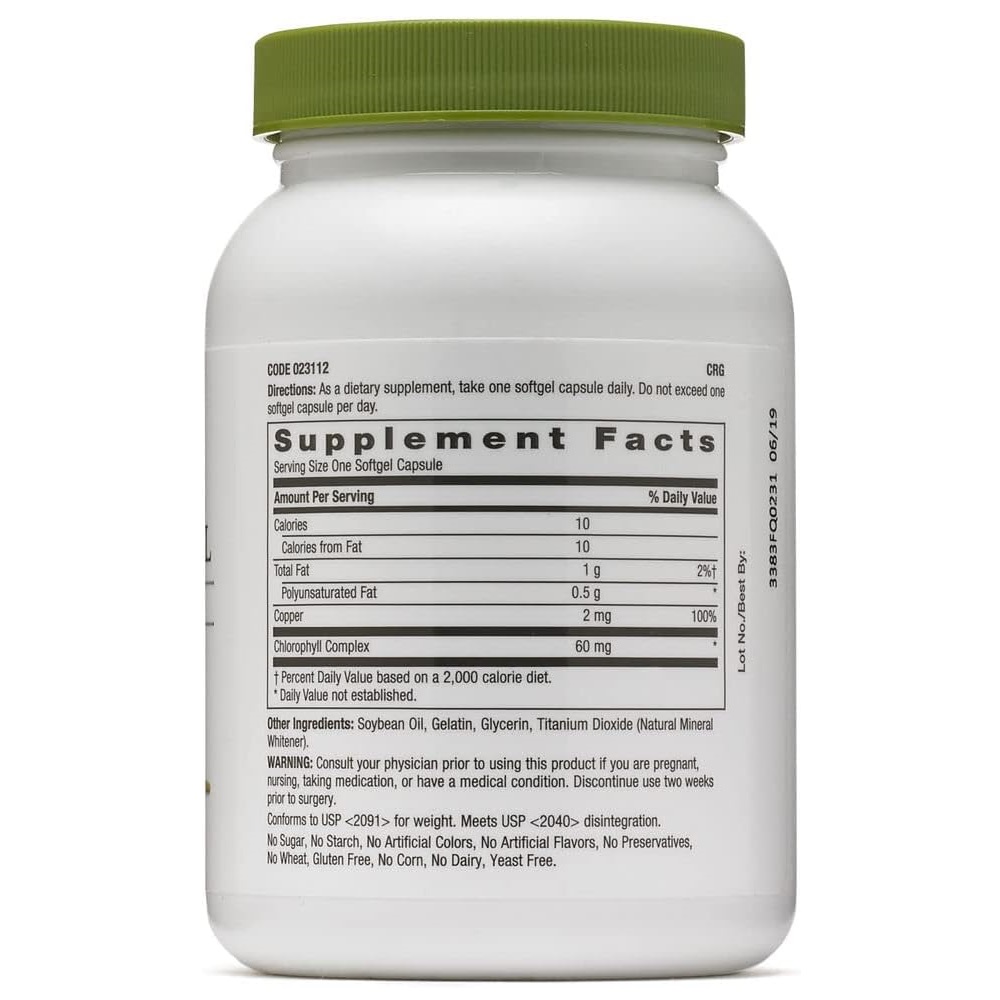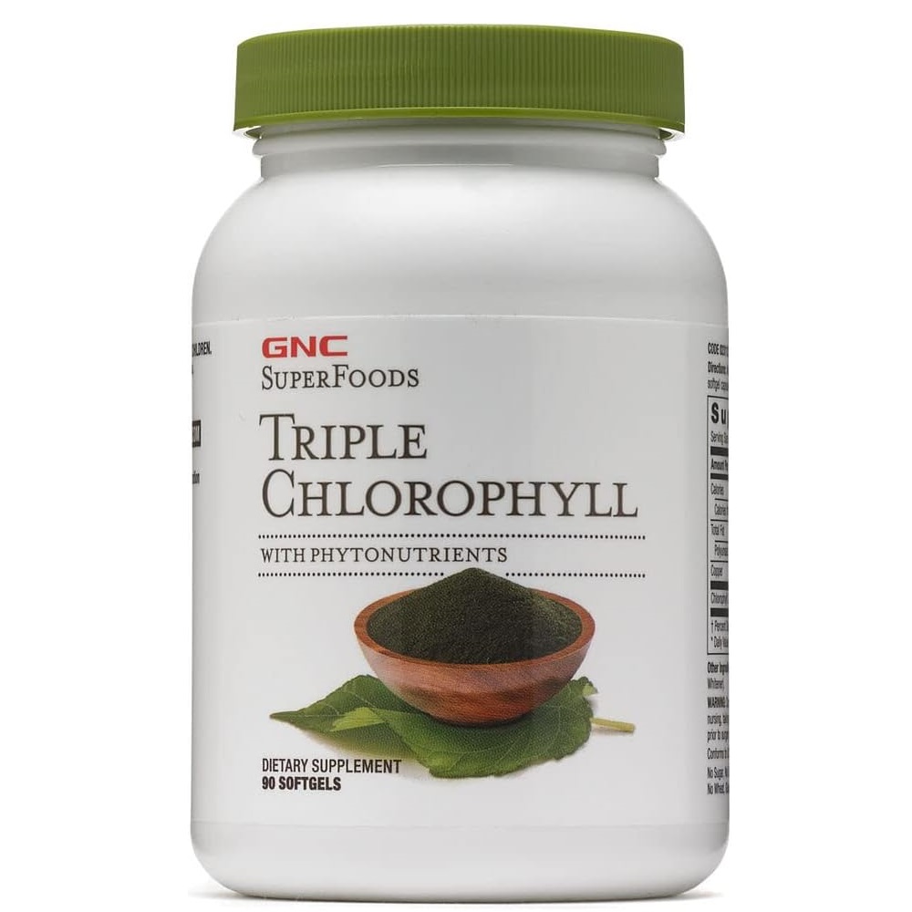 مقدار کلروفیل: هر ژل نرم از GNC Superfoods Triple Chlorophyll حاوی 60 میلی‌گرم کلروفیل است. کلروفیل، رنگدانه سبز گیاهان، نقش کلیدی در فرآیند فتوسنتز دارد و به دلیل خواص منحصر به فردش در تغذیه و سلامت عمومی شناخته شده است.