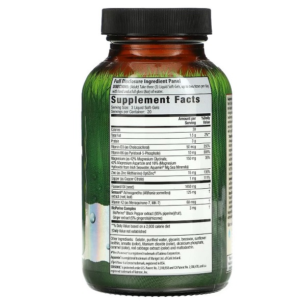 ویژگیهای منیزیم و آشواگاندا اروین نچرالز Irwin Magnesium + Ashwagandha