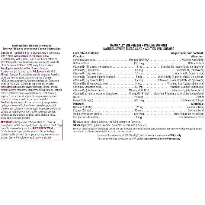 طریقه مصرف مولتی ویتامین کودکان جمیسون Jamieson Complete Kids Chewable Multi