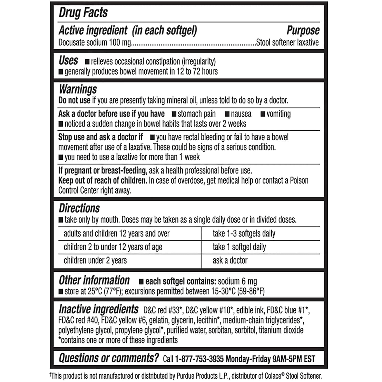 - دوکوزات سدیم 100 میلیگرم: به عنوان نرمکننده مدفوع عمل میکند و با جذب آب به داخل مدفوع، آن را نرمتر میکند.
