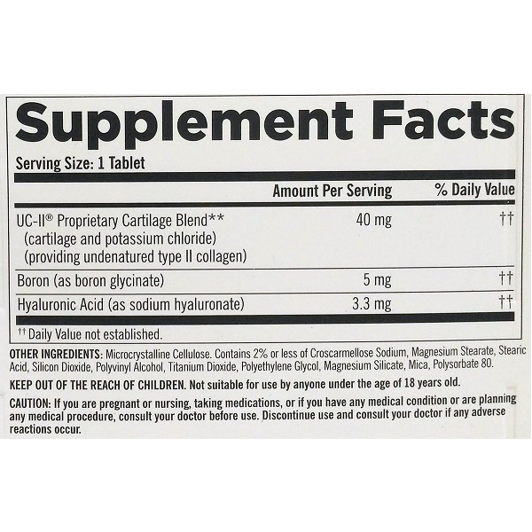 - حاوی UC ll® کلاژن نوع II غیر طبیعی، بور، اسید هیالورونیک