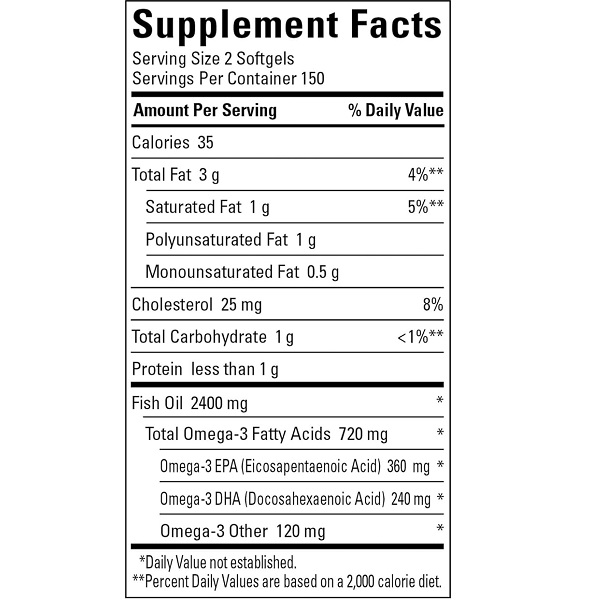 - 1200 میلی گرم (720 میلی گرم اسیدهای چرب امگا 3)