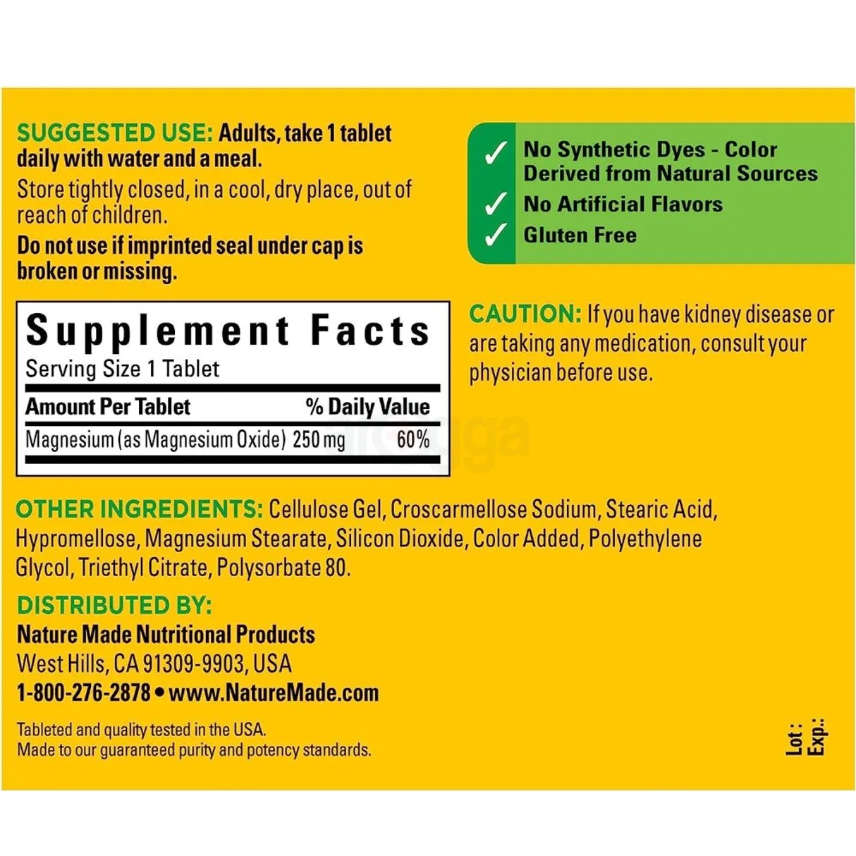 مصرف منیزیم نیچرمید 250 میلی گرم 300 عدد Nature Made Magnesium