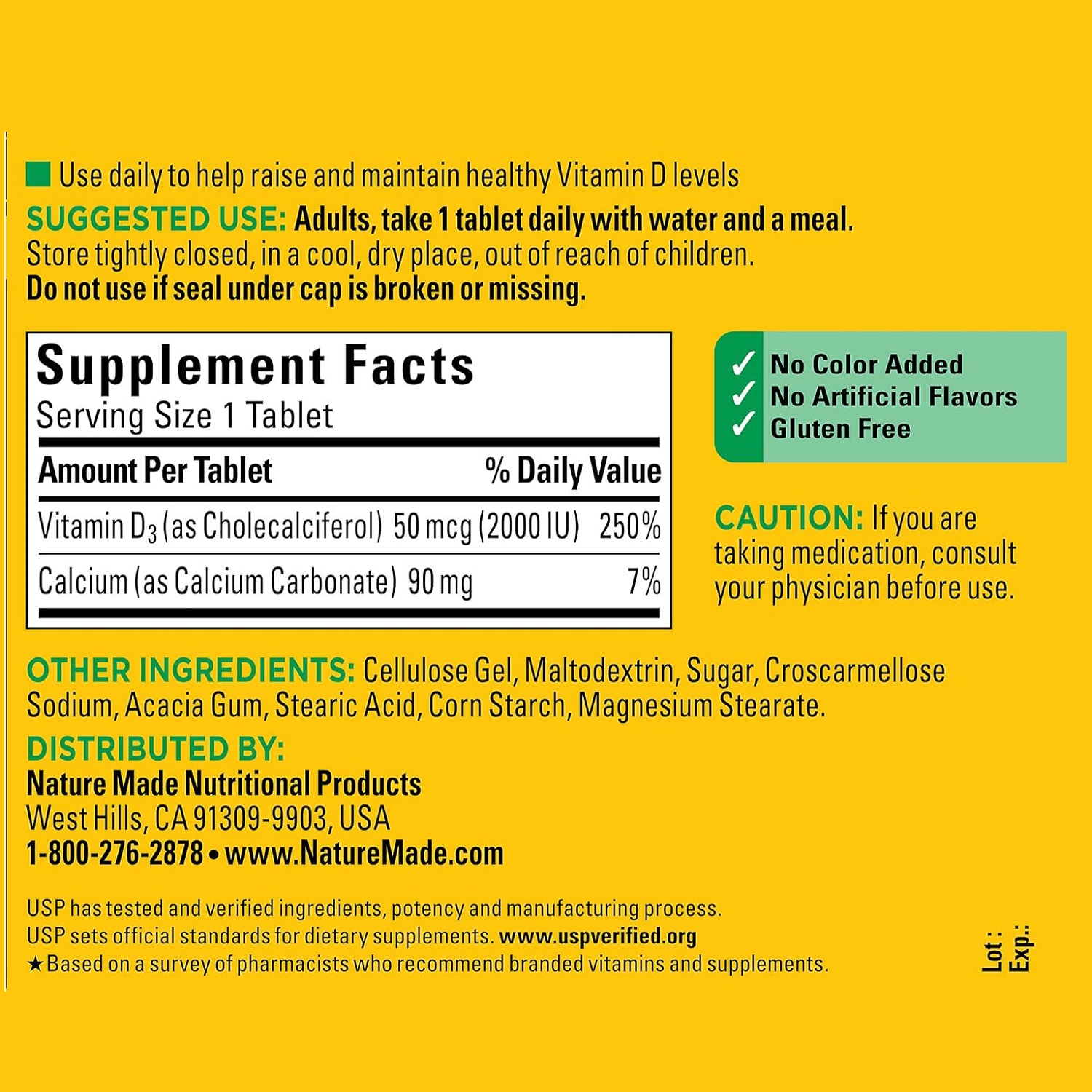 ترکیبات مکمل Nature Made Vitamin D3 2000 IU