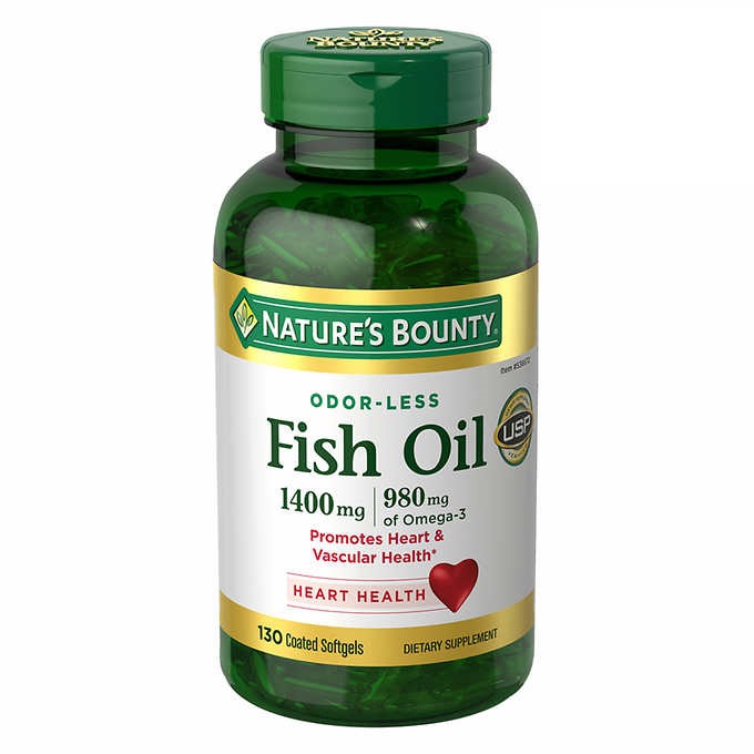 روغن ماهی نیچرز بونتی 1400 میلی گرم 130 عدد Nature’s Bounty Fish Oil از سلامت قلب و عروق و سلامت مفاصل شما حمایت می کند. این مکمل در هر وعده 1400 میلی گرم روغن ماهی و 980 میلی گرم امگا 3 را ارائه می دهد. کپسول های روغن ماهی حاوی اسیدهای چرب غیراشباع امگا 3 هستند. اسیدهای چرب اشباع نشده امگا 3 در روغنهای انواع خاصی از ماهی، سبزیجات و سایر منابع گیاهی یافت میشوند. این اسیدهای چرب توسط بدن ساخته نمی شوند و باید در رژیم غذایی مصرف شوند. اسیدهای چرب غیراشباع امگا 3 با کاهش تولید تری گلیسیرید در بدن عمل می کنند. سطوح بالای تری گلیسیرید می تواند منجر به بیماری عروق کرونر، بیماری قلبی و سکته شود. روغن ماهی همراه با رژیم غذایی و ورزش برای کمک به کاهش سطح تری گلیسیرید در خون استفاده می شود.