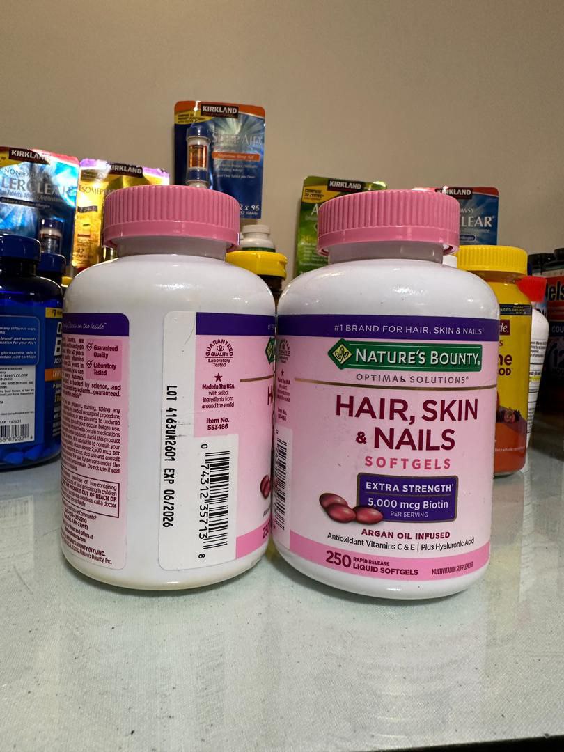 مکمل تقویت کننده پوست مو و ناخن نیچرز بونتی Nature’s Bounty Hair Skin and Nails محصولی ایدهآل برای افرادی است که به سلامت و زیبایی پوست، مو و ناخن خود اهمیت میدهند. این مکمل با ترکیباتی شامل بیوتین، کلاژن، هیالورونیک اسید، ویتامینهای A، C، D، E و مواد معدنی نظیر زینک و سلنیوم، به تقویت رشد مو، استحکام ناخنها و افزایش شادابی و لطافت پوست کمک میکند.