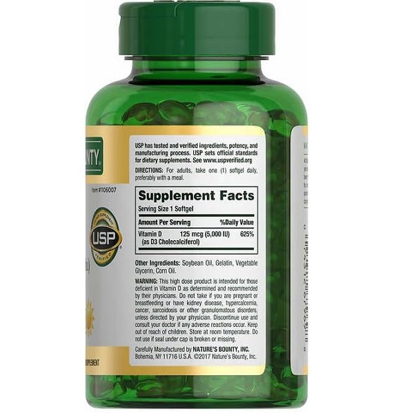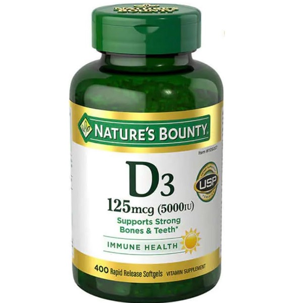 کپسول ویتامین D3 نیچرز بونتی 125 میلی گرم 400 عدد Nature’s Bounty Vitamin D3 فرم قوی و فعال ویتامین D است که در فرم سافت ژل ارائه می شود. ویتامین D می تواند به عنوان یک هورمون در بدن عمل کند زیرا در تنظیم چندین عملکرد بسیار مهم نقش دارد. اغلب به عنوان ویتامین آفتاب شناخته می شود زیرا در پوست در معرض نور خورشید سنتز می شود.