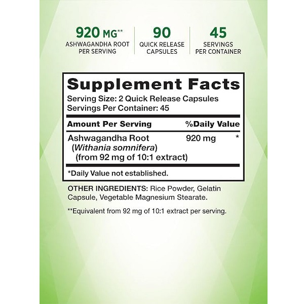 - ریشه آشواگاندا (Withania somnifera) (از 230 میلی گرم عصاره 4:1) 920 میلی گرم