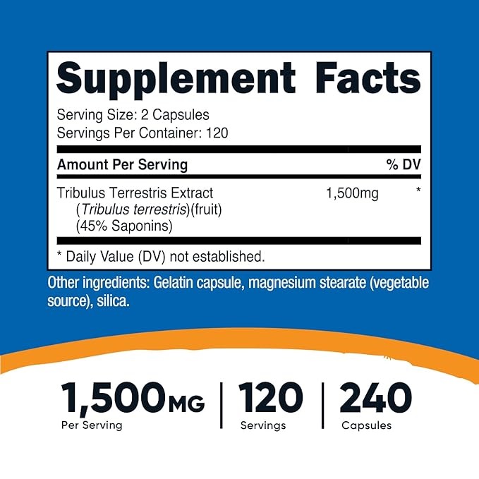 مکمل تریبولوس تتریس نوتری کاست حاوی 1500 میلیگرم عصاره تریبولوس تتریس در هر وعده است. این عصاره با 45% ساپونینها (Saponins) استاندارد شده است، که یکی از مهمترین ترکیبات فعال این گیاه به شمار میآید. این مقدار بالا از تریبولوس تتریس در هر کپسول، اطمینان حاصل میکند که مصرفکنندگان از حداکثر فواید این گیاه بهرهمند شوند.