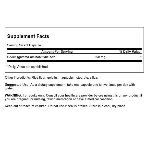 هر کپسول از مکمل گابا سوانسون حاوی 250 میلیگرم گابا است. این مقدار به راحتی میتواند نیازهای روزانه بدن را تأمین کند.