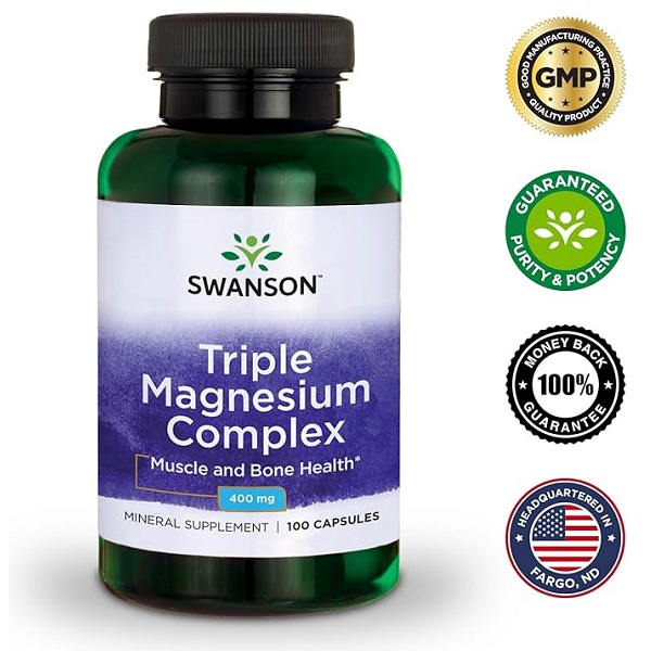 کمپلکس تریپل منیزیم سوانسون Swanson Triple Magnesium Complex برای پیشگیری و درمان مقادیر کم منیزیم در خون استفاده می شود. همچنین برای درمان علائم اسید معده بیش از حد مانند ناراحتی معده، سوزش سر دل و سوء هاضمه اسیدی استفاده می شوند.