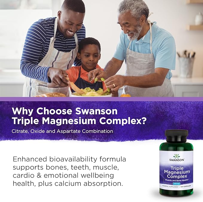 کمپلکس تریپل منیزیم سوانسون Swanson Triple Magnesium Complex ترکیبی از اکسید منیزیم، سیترات منیزیم و آسپارت منیزیم است. این ترکیب سه شکل از منیزیم را برای کمک به حمایت از عضلات قوی و استخوان های سالم ارائه می دهد.