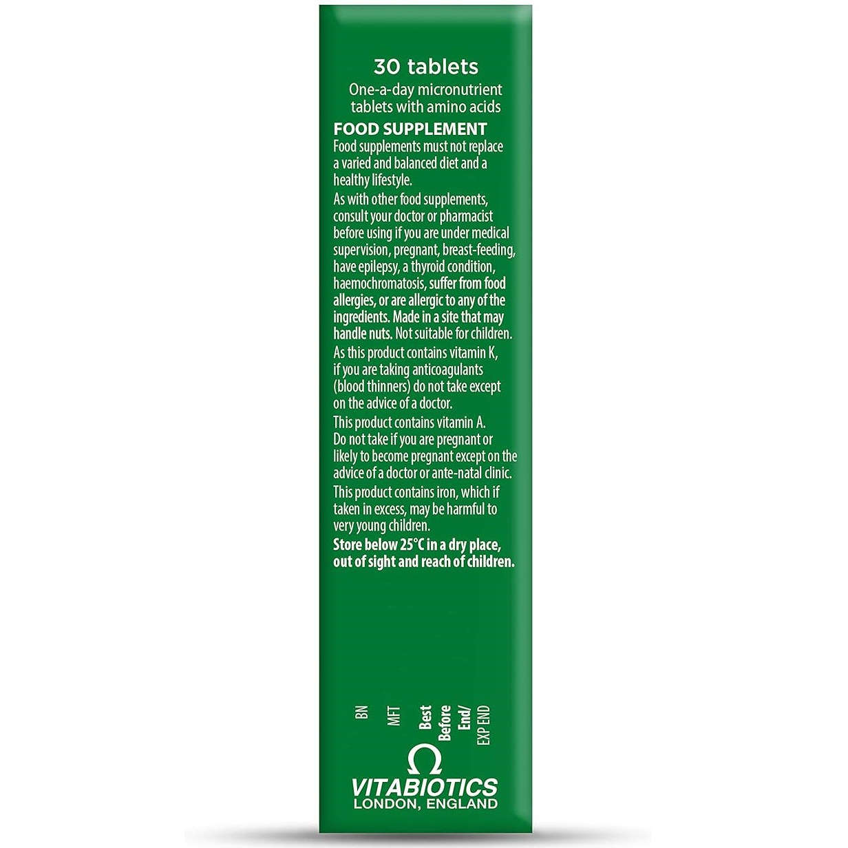 مکمل های غذایی نباید جایگزین رژیم غذایی متنوع و متعادل و سبک زندگی سالم شوند. مانند سایر مکملهای غذایی، اگر تحت نظارت پزشکی، باردار، شیردهی، صرع، بیماری تیروئید، هموکروماتوز، آلرژی غذایی یا حساسیت به هر یک از مواد تشکیل دهنده آن هستید، قبل از مصرف با پزشک یا داروساز خود مشورت کنید. ساخته شده در کارخانه ای که ممکن است آجیل را فراوری کند. برای کودکان مناسب نیست. از آنجایی که این فرآورده حاوی ویتامین K است، در صورت مصرف داروهای ضد انعقاد (رقیق کننده خون) جز با نظر پزشک مصرف نکنید.