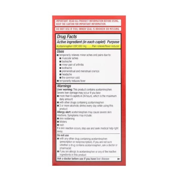• حاوی ۶۵۰ میلی‌گرم استامینوفن