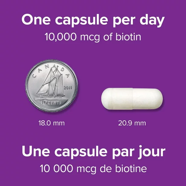ناخن و مو قوی تر: بیوتین 10000 میکروگرم می تواند به تقویت ناخن های شکننده و موهای نازک کمک کند و ممکن است به بهبود خشکی پوست کمک کند.