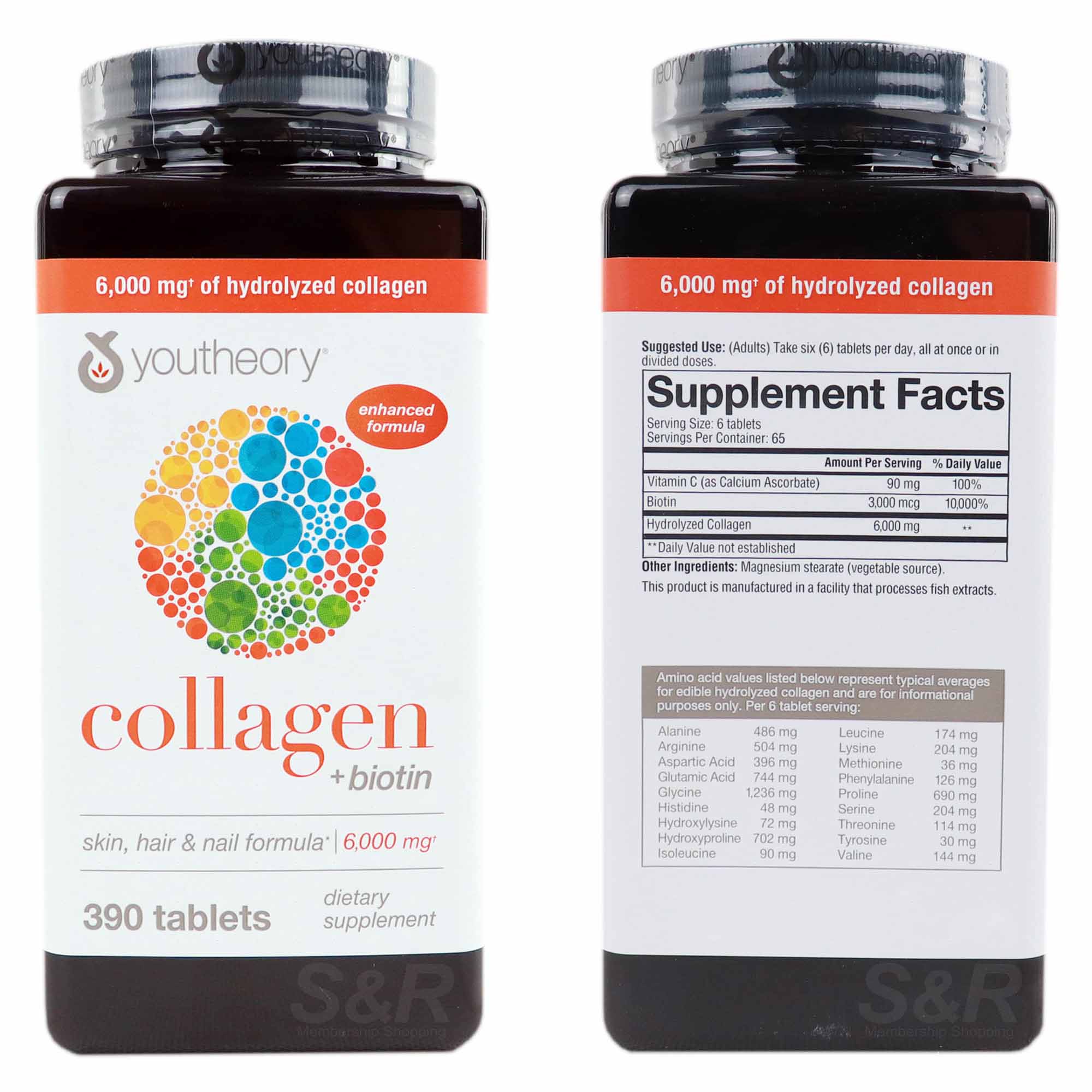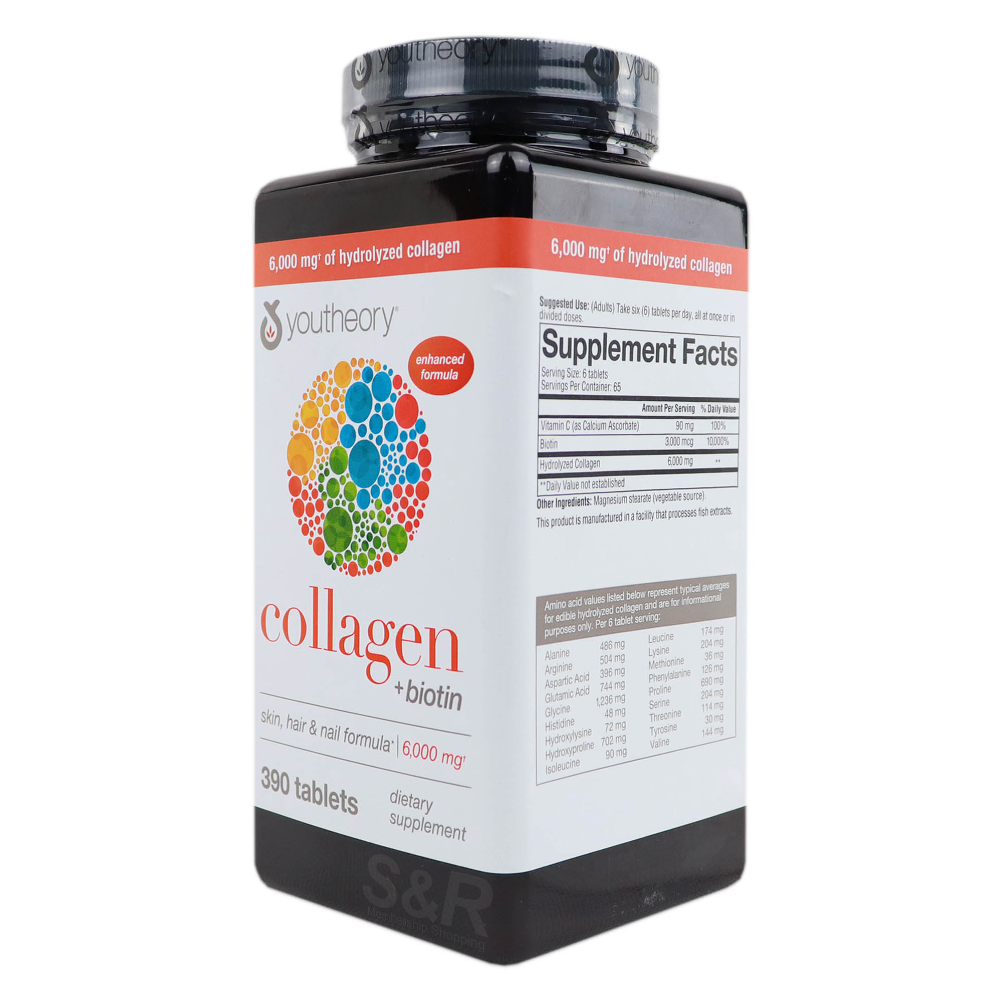 فرمول پیشرفته قرص کلاژن یوتئوری 390 عدد Youtheory Collagen با بیوتین غنی سازی شده است که به بدن کمک می کند تا غذا را به انرژی تبدیل کند و در عین حال از سلامت مو و ناخن حمایت می کند. همچنین به بارداری سالم کمک می کند و به مدیریت سطح قند خون کمک می کند.